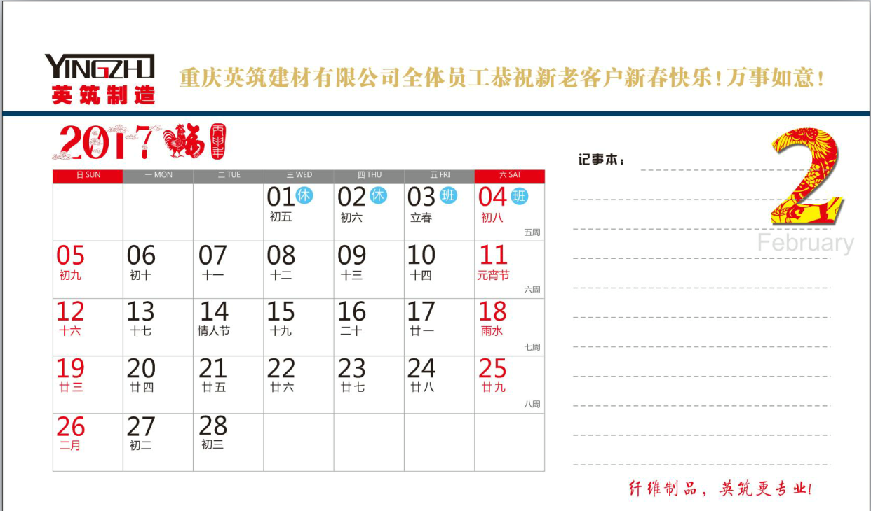 轉(zhuǎn)眼間,2017年的日歷就已經(jīng)翻開了新的篇章。伴隨一年一度的新年到來,我公司專門訂做了2017年的新年臺歷,用來發(fā)給所有的新老客戶。其實做臺歷不僅僅是對新老客戶的回顧與展望,更重要的是向所有貴賓客戶致敬和尊重!