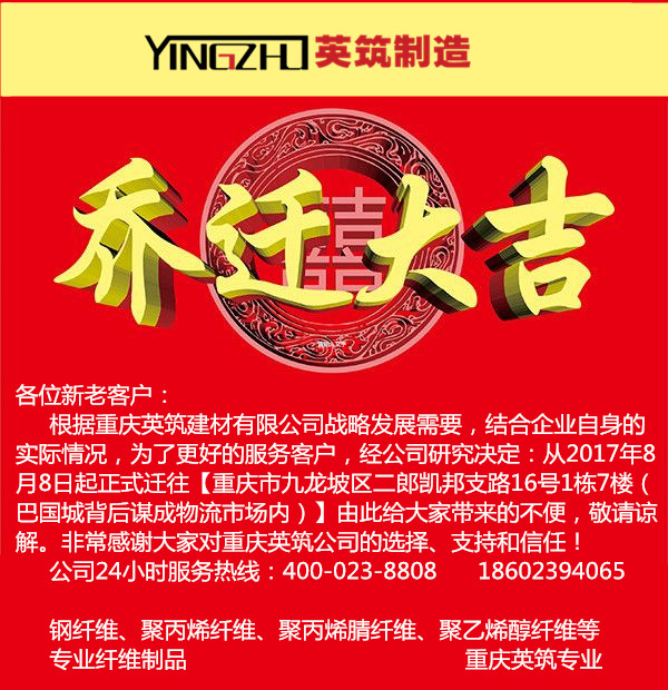 根據(jù)重慶英筑建材有限公司2017年戰(zhàn)略發(fā)展需要,結(jié)合企業(yè)自身的實際情況,為了更好、更優(yōu)、更快捷的服務(wù)各位客戶。經(jīng)公司研究決定:從2017年8月8日起正式遷往【重慶市九龍坡區(qū)二郎凱邦支路16號1棟7樓(巴國城背后謀成物流市場內(nèi))】。由此給大家?guī)淼牟槐憔凑堈徑?,非常感謝大家一直以來對重慶英筑公司的選擇、支持和信任!